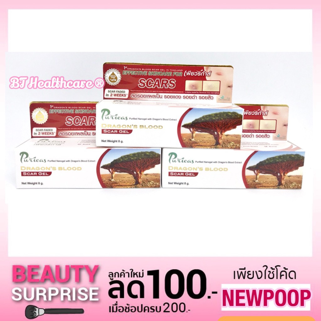 - ชื่อสินค้า ผลิตปี2018 แท้100% Puricas Dragon's Blood Scar Gel 8 g เพียวริก้าส์ ดราก้อนบลัด ลดรอยแผลเป็น สิว