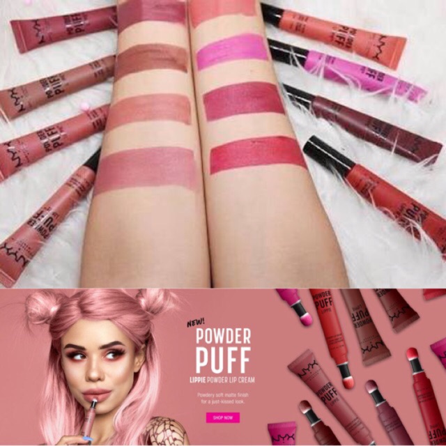 NYX Powder Puff Lippie Powder Lip Cream ลิปสติกเนื้อแป้งที่จะเปลี่ยนฟินนิชเป็นแบบกึ่งครีมกึ่งแมทท์ แบบเวลเวท บนปากของคุณ ครีเอทริมฝีปากสวยทำคุณเป็นสาว น่าจูจุ๊บสุดๆ มีให้เลือกถึง 8 สี ด้วยกันตั้งแต่สีนู้ดกุหลาบ สีพีช สีแดงเบอร์รี่ สีแดงสด สีชมพูช็อคกิ้งพิงค์ไปจนถึงสีพลัมองุ่น มาในแพ็คเกจจิ้งมาเป็นแบบหลอด เพียงบีบเนื้อลิปจะไหลออกมาตรงหัว คุชชั่น และ เพียง TAB บนริมฝีปากก็จะได้ปากแซ่บสมใจ ใช้ง่ายสุดๆ โอ้ย เกิร์ล เริ่ดเว่อร์ ต้องยอมความแน่น ความเฟียซของสี nyx nyxthailand nyxcosmetics nyxpufflippie pufflippie