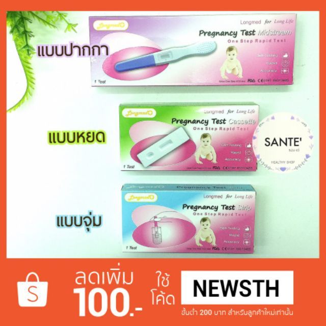 ของใหม่ค่า EXP 03/2021 หรือใหม่กว่า Longmed Pregnancy test ที่ตรวจครรภ์ยี่ห้อลองเมด ปริมาณฮอร์โมน hCGที่สามารถตรวจเจอ 25 m.I.U/mL ของปัสสาวะ แนะนำให้ตรวจตอนเช้า ปัสสาวะครั้งแรก เพราะฮอร์โมนจะมีเยอะสุดเมื่อเทียบกับเวลาอื่นของวัน ตรวจได้เร็วสุดคือประจำเดือนขาดไป 1 วัน ทั้ง 3 ชนิด ความแม่นยำเท่ากันแต่ต่างที่วิธีใช้ ถนัดแบบไหนเลือกแบบนั้นค่ะ สั่ง 12 ชิ้นขึ้นไป ราคาส่ง ติดต่อแชทค่ะ ยี่ห้ออื่นก็มีค่ะ สอบถามหลังไมค์ หรือดูได้ที่หมวดหมู่เครื่องมือแพทย์ค่ะ 01 แบบจุ่ม (Strip test) เหมาะสำหรับคนใช้บ่อยๆ ใช้ง่าย สิ่งที่แนบมา - แผ่นทดสอบการตั้งครรภ์ - ถ้วยรองปัสสาวะ - ใบแนะนำการใช้ วิธีใช้ -นำแถบทดสอบออกจากซอง -จุ่มแถบทดสอบลงในถ้วยปัสสาวะอย่างน้อย 10 วินาที จนแถบทดสอบเปียก โดยที่จุ่มลงในถ้วยปัสสาวะไม่เกินขีดลูกศรที่กำหนด 02 แบบหยด (cassette) เหมาะสำหรับผู้ที่เคยตรวจในครั้งแรก เพราะใช้ง่ายสุด สิ่งที่แนบมา - ตลับทดสอบการตั้งครรภ์ - ถ้วยรองปัสสาวะ - ใบแนะนำการใช้ วิธีใช้ -นำตลับทดสอบออกจากซอง -หยดปัสสาวะลงในหลุม ตำแหน่ง S จำนวน 2-3 หยด -อ่านผลทดสอบภายใน 3-5 นาที (ไม่ควรอ่านหลังจากผ่านไปแล้ว 5 นาที) 03 แบบปากกา (Midstream) พกพาสะดวก ไม่ต้องใช้ถ้วยรองปัสสาวะ สิ่งที่แนบมา - ปากกาทดสอบการตั้งครรภ์ - ใบแนะนำการใช้ วิธีใช้ -นำปากกาทดสอบออกจากซอง -ปัสสาวะผ่านแถบดูดซับ -อ่านผลทดสอบภายใน 3 นาที (ไม่ควรอ่านหลังจากผ่านไปแล้ว 5 นาที) ที่ตรวจครรภ์ ชุดตรวจตั้งครรภ์ ทดสอบตั้งครรภ์ ตรวจท้อง ที่ตรวจครรภ์แบบหยด ที่ตรวจครรภ์แบบจุ่ม ที่ตรวจครรภ์แบบปากกา ทดสอบครรภ์ ที่ตรวจตั้งครรภ์ pregnant pregnancytest midstream cassette striptest แบบตลับ santehealthyshop