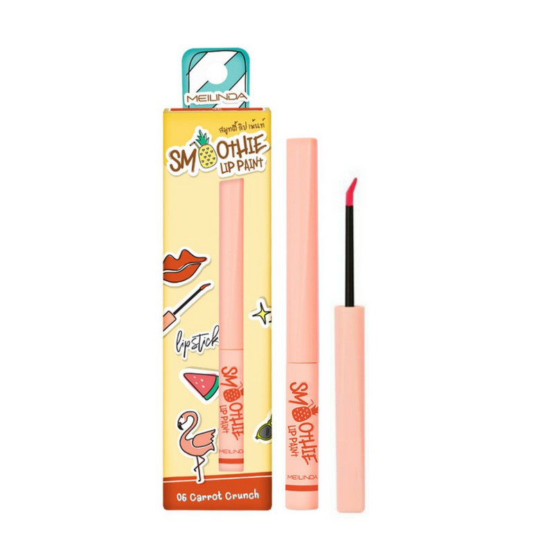 Mei Linda Smoothe Lip Paint ลิปสติกเนื้อวิปครีมเนียนนุ่มบางเบา เม็ดสีชัดเนียนละเอียดช่วยเบลอร่องริมฝีปาก หัวแปรงโค้งช่วยให้ทาง่าย มีให้เลือก 5 เฉดสี 01 Strawberry Yogurt 02 Melon Honey 03 Apple Berry 04 Watermelon 05 Tomato Juice 06 Carrot Crunch meilinda lipstick