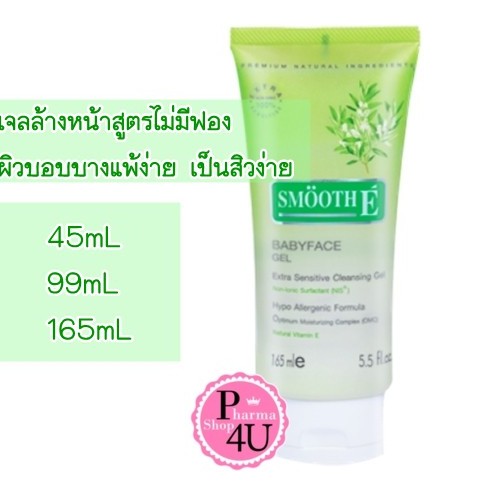 - Smooth E Babyface Gel สมูท อี เบบี้เฟซ เจล เจลล้างหน้าสูตรไม่มีฟอง ลดสิว สำหรับผิวบอบบางแพ้ง่าย เป็น ซื้อที่ไหน